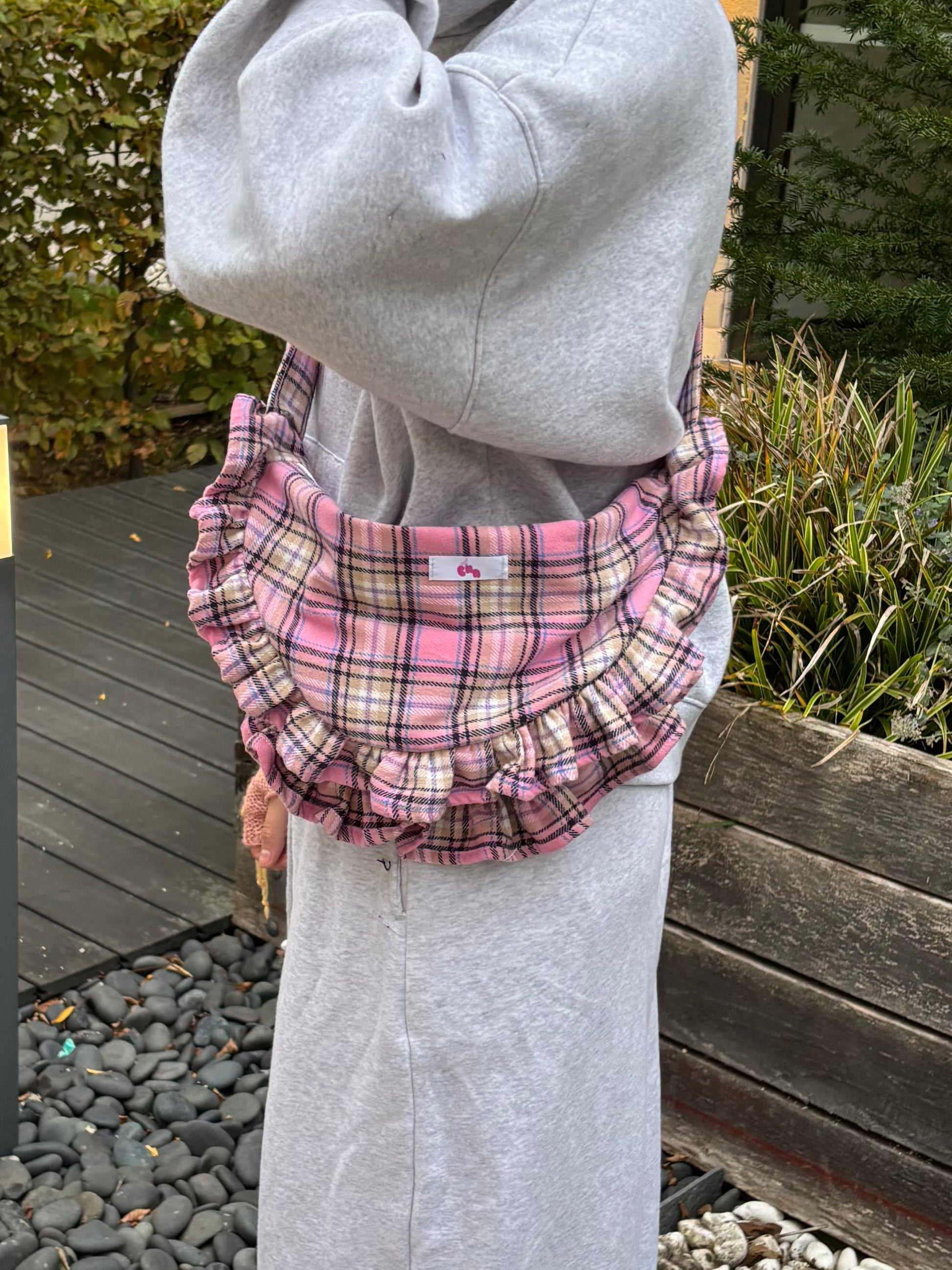 Épuisépochette à zip tartan rose