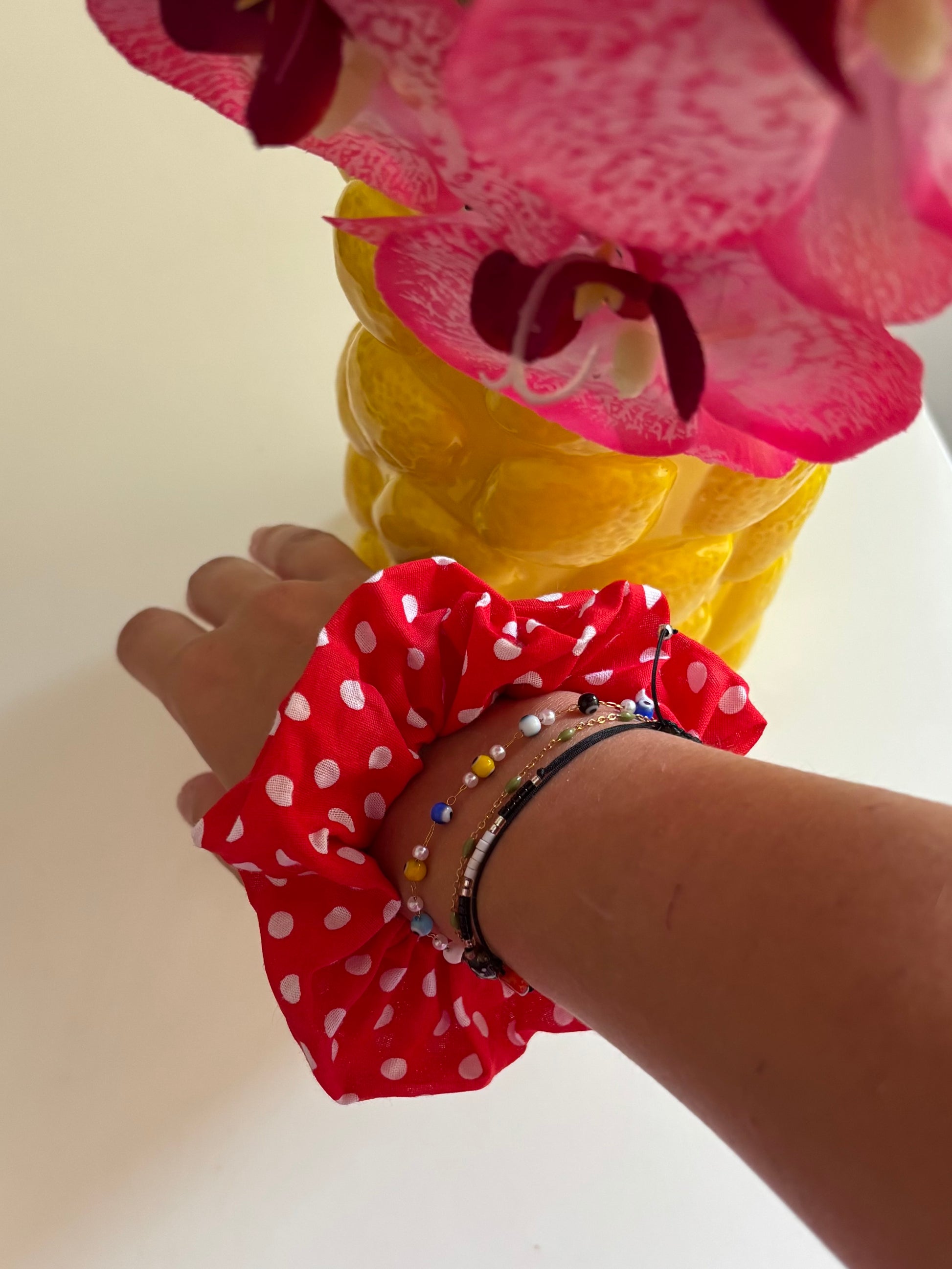 Ajoute une touche unique à tes coiffures avec ce chouchou confectionné à la main.