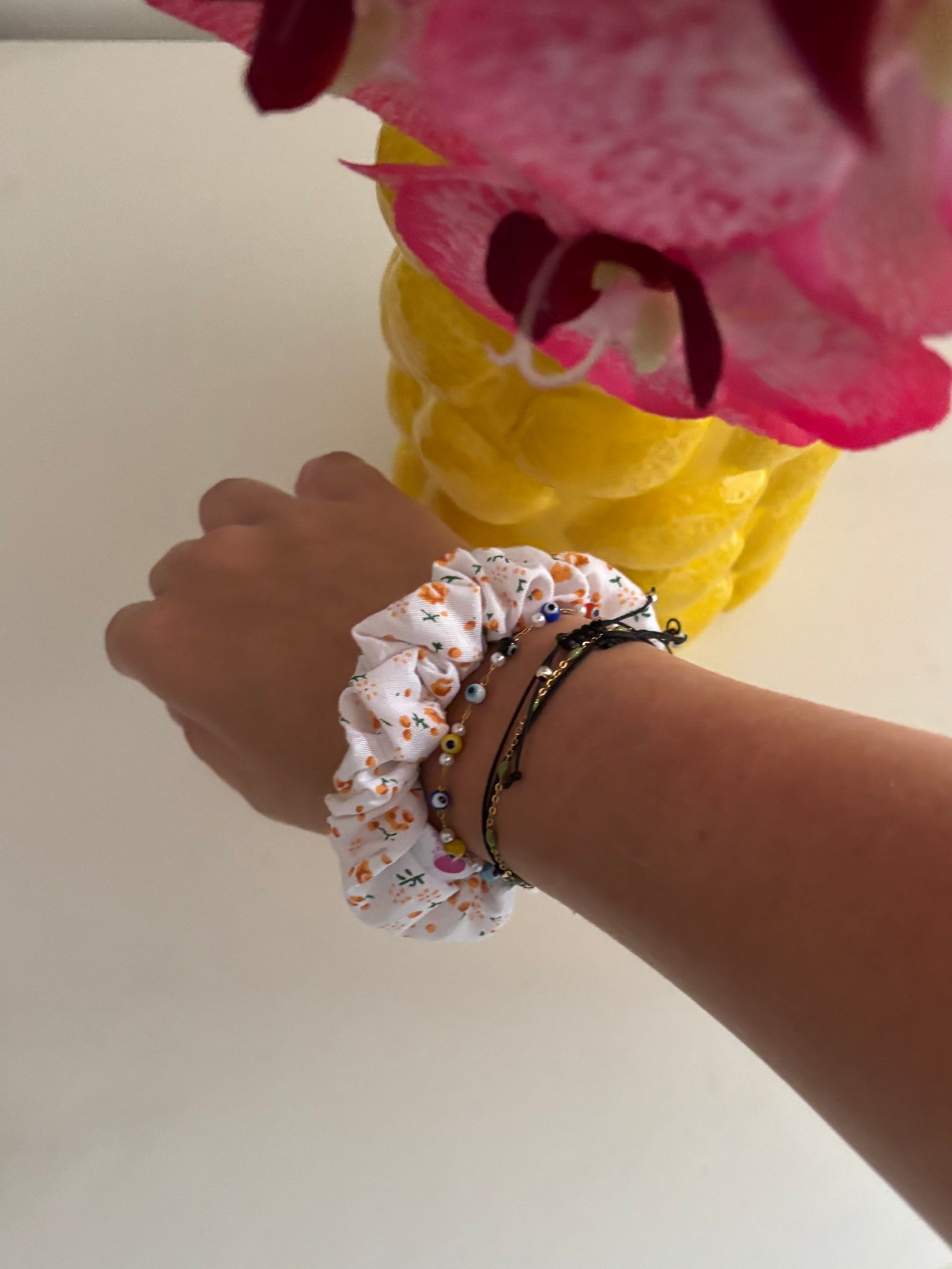 Ajoute une touche unique à tes coiffures avec ce chouchou confectionné à la main.